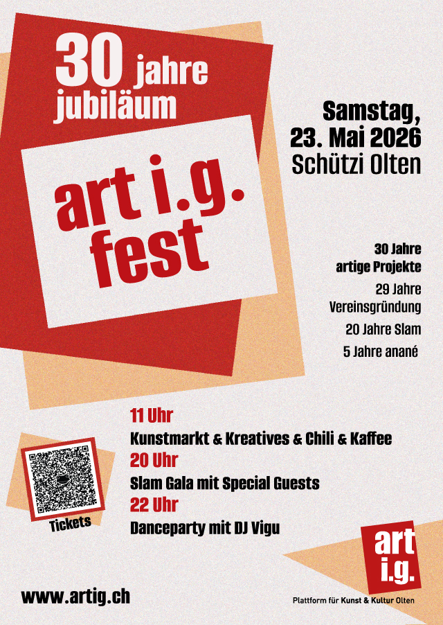 Wir feiern 30 Jahre art i.g. / 20 Jahre Poetry Slam und 5 Jahre anané